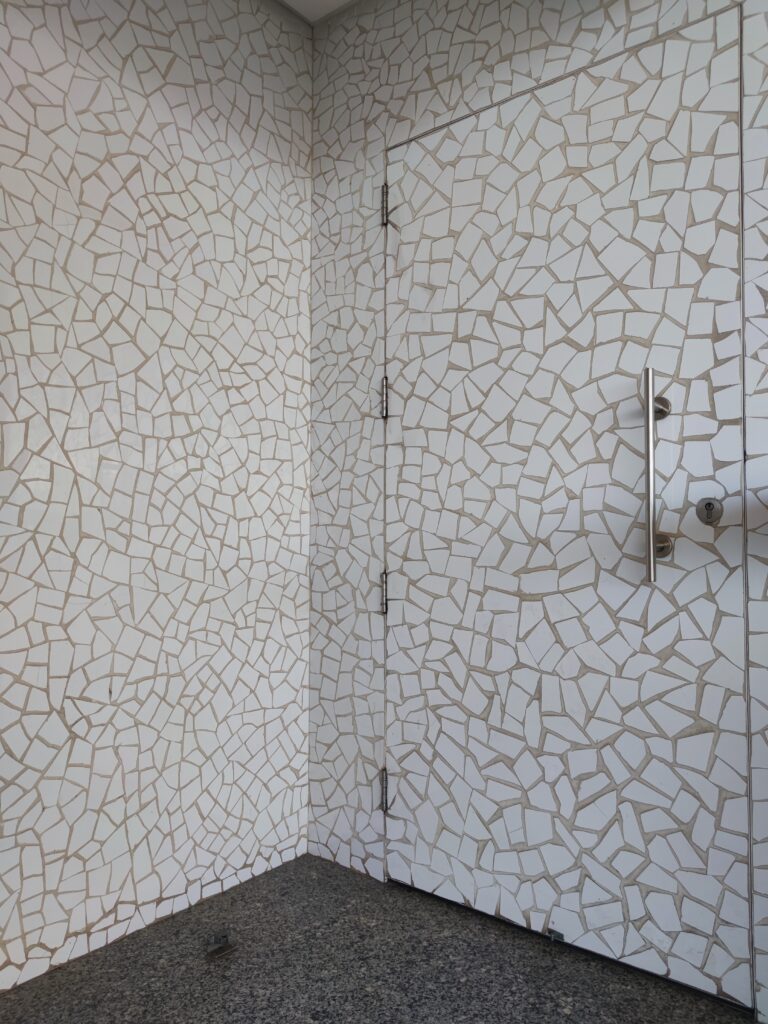 Czerpiąc z hiszpańskiej tradycji zwanej ’trencadis’ projektant zdecydo­wał się pokryć elewację budynku malutkimi kawałeczkami białej połuczonej ceramiki. Efekt -totanie spektakularny i bardzo trwały.