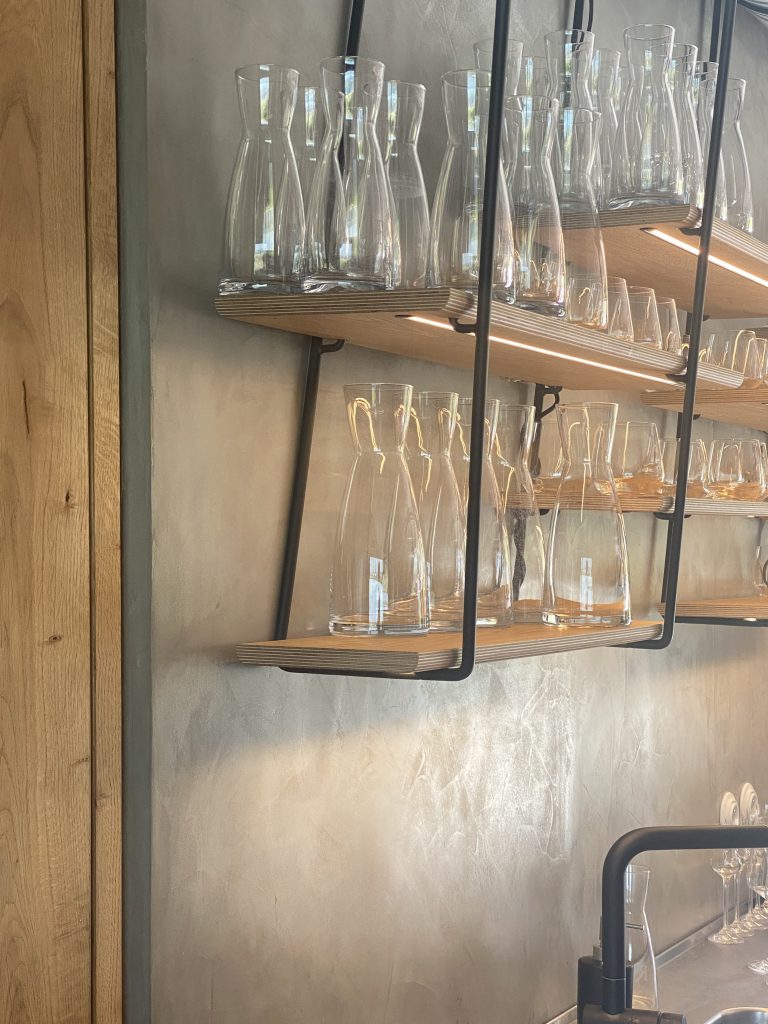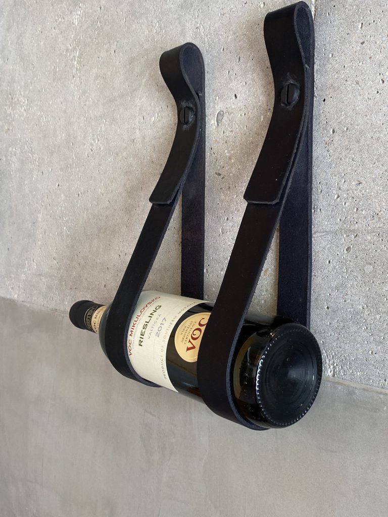 Spójrz tylko jak różnorodna i unikatowa jest w tym miejscu ekspozycja butelek. Skórzane podwiesia sąsiadują z morficznymi wgłębieniami frezowanymi w grubych belkach z klejonego drewna.